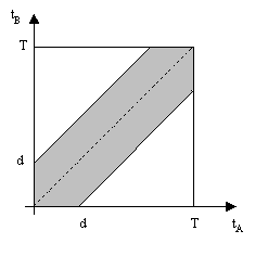 coincidence" (within +-d of the diagonal) is simply the region swept