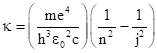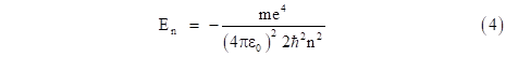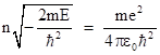 Substituting into the expression for the energy E gives the corresponding quantized energy levels of the hydrogen atom |