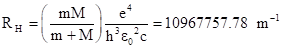 Actually, to be more accurate, the mass m in this expression should be replaced with the "reduced mass" mM/(m+M) where M is the mass of the proton (or, more generally, the nucleus), just as in classical orbital mechanics. Then the coefficient in the above expression is identified with Rydberg's constant RH for the hydrogen atom, and using the values of the fundamental constants |