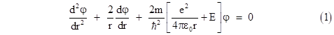 which is identical to the discrete energy levels of Bohr's model discussed previously. It’s worth noting that the quantization of energy levels here is not the result of quantized angular momentum or orbital standing-waves. It arises from an analysis of the purely radial component of the Schrodinger wave equation of the ground state, which is spherically symmetrical and has an angular quantum number of zero. |