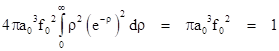 Each of these wave functions includes a constant factor f0. To determine the value of this factor, recall that the squared norm of the wave function is the probability density, and so the integral of this quantity over all of space must equal 1. The volume of an incremental spherical shell of radius r and thickness dr is 4πr2dr so the probability integral is |